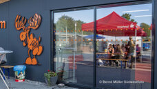 ihrer Stellvertreterin Lydia Schonhardt enthüllten Spendentafel am Zaun erinnern.